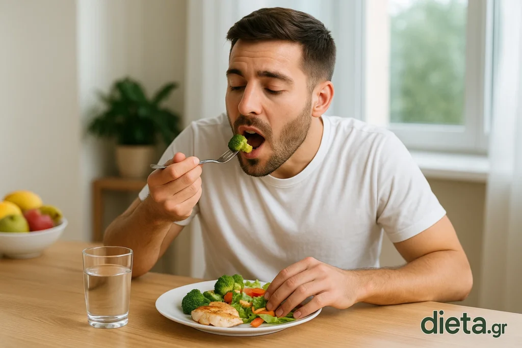 - Μην τρως όρθιος ή βιαστικά: κάθισε για κάθε γεύμα ή σνακ.
