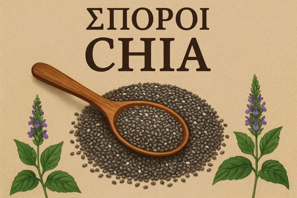 Οι σπόροι chia προέρχονται από το φυτό Salvia hispanica, που ευδοκιμεί στο Μεξικό και την Κεντρική Αμερική. Ήταν βασικό τρόφιμο των Αζτέκων και των Μάγια, και το όνομά τους σημαίνει «δύναμη». Σήμερα χρησιμοποιούνται ευρέως ως συμπλήρωμα διατροφής, καθώς είναι πλούσιοι σε φυτικές ίνες, πρωτεΐνες, ωμέγα-3 και αντιοξειδωτικά.